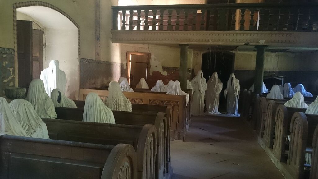 Tento nejstrašidelnější kostel ČR se stal světovým unikátem. Místní umělec do lavic instaloval sádrové postavy připomínající věřící (odsunuté sudetské Němce), kteří se zde kdysi modlili. Kostel s duchy Luková je polorozpadlý a postavy v bílých prostěradlech působí ve světle zapadajícího slunce tak děsivě, že zapomenete i na to, že nemáte signál.